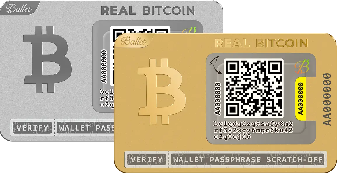 The front side of a Ballet card displays the cold storage’s deposit address in QR code and text format. Just scan the QR code to send crypto to the cold storage. There is no need to set up or install anything.